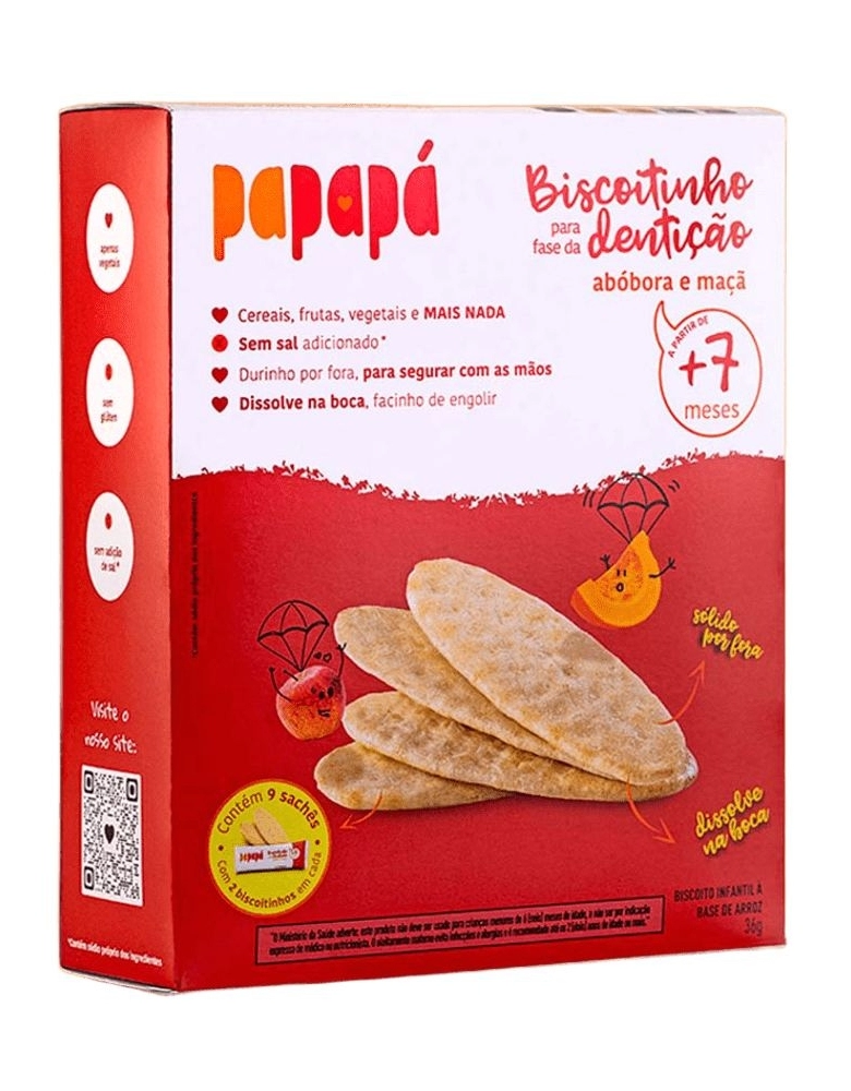 ALIMENTOS>ALIMENTOS INFANTIS>BISCOITO FASE DENTICAO ABOBORA E MACA SEM GLUTEN PAPAPA CAIXA 12X36G